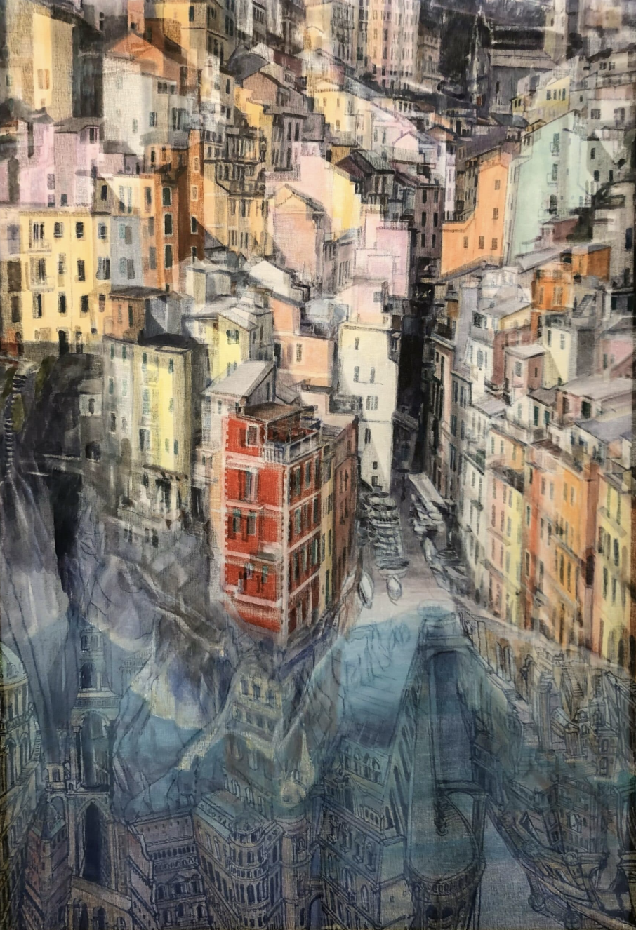 Pour cela, il peint des voiles de coton qui flottent devant une autre peinture en arrière-plan. Les tableaux ainsi composés changent littéralement avec l’angle de vue.